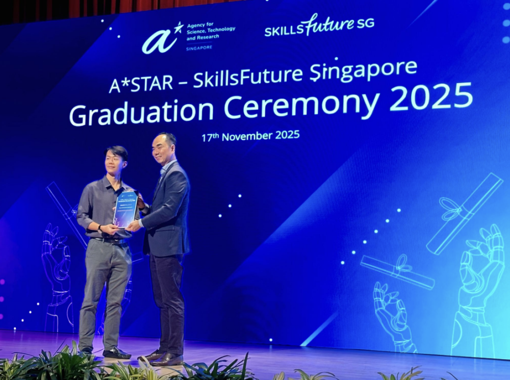 The ASTAR–SSG Graduation Ceremony 2025 recognised individuals who have embraced new ways of thinking about how products and processes impact the environment across their entire lifecycle. Supported by SkillsFuture Singapore and graced by ASTAR Chief Executive Officer Mr Tan Kok Yam, the ceremony brought together learners, industry partners and leaders committed to building a more sustainable future.
